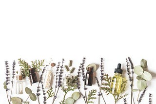Homeopathy eco alternative medicine concept – classical homeopathy pills, thuja, eucalyptus, lavender essential and aroma oil and healing herbs and on…